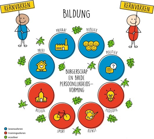 Om al deze ‘sferen’ heen zit de ‘ecosfeer’ van de natuur. Hierin leren kinderen alle aspecten die te maken hebben met de natuur om ons heen, het milieu en het klimaat.Met bildung stimuleren we bij kinderen de ontwikkeling van competenties als bijvoorbeeld: samenwerken, creativiteit, kritisch denken, zelfsturend en probleemoplossend vermogen, culturele sensitiviteit en sociaal bewustzijn. Door middel van ‘bildung’ ontwikkelt een kind een sterke identiteit, waardoor het stevig kan staan en wendbaar is in een veranderende omgeving.